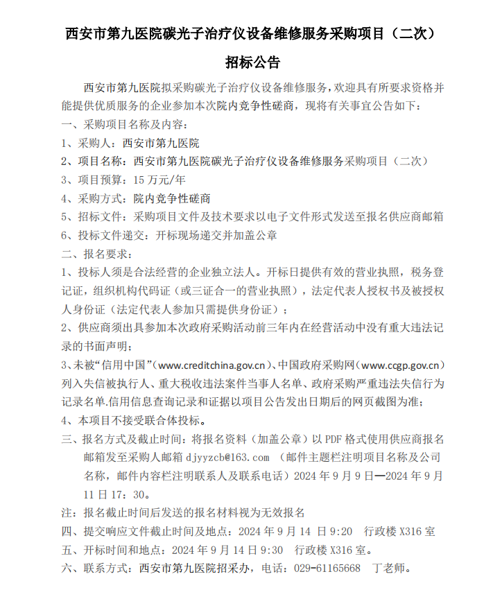 碳光子治疗仪设备维修采购项目(二次) 招标公告