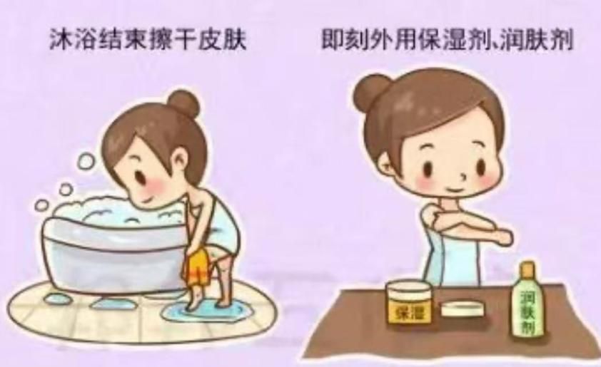 许多患者容易陷入洗浴的误区,例如热水烫洗或禁止洗浴等。其实,正确的洗浴方法也是AD患者皮肤护理的一部分,包括水温适宜、洗浴时间不宜过长(10-15分钟)、使用温和或无肥皂清洁剂的温水浸浴或淋浴等,做到以上几点不仅不会加重病情,反而可以适当缓解症状。