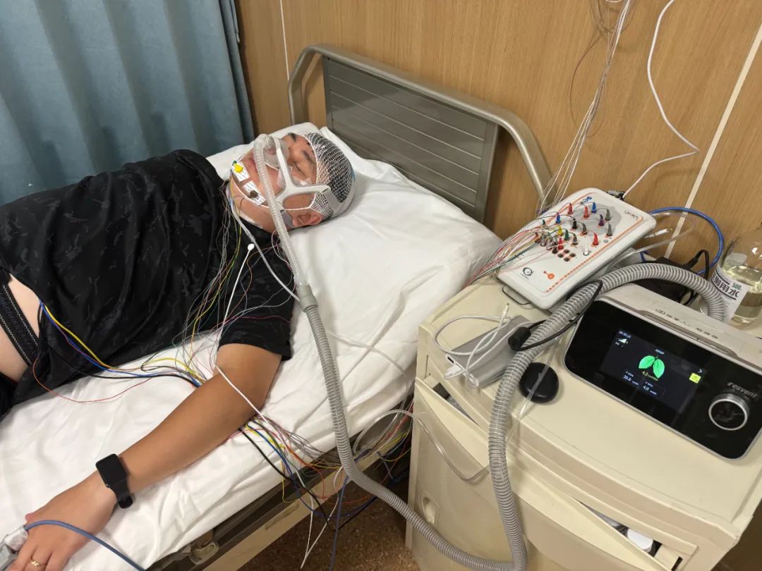 西安市第九医院呼吸与危重症医学科早在10年前就开展了多导睡眠呼吸监测项目。患者只需要在睡眠室睡一夜,入睡前,护士在患者的头部、胸部和腿部贴上电极片,鼻部放置呼吸气流感应管,手指配戴上血氧监测仪等装置,再连接监测设备,通过脑电、心电、眼电、胸腹呼吸幅度、肢体活动、氧合监测及视频监控等记录进行监测,通常记录睡眠状态至少6小时以上,即可进行睡眠分析,发现患者睡眠过程中有无呼吸暂停、暂停次数、有无缺氧及缺氧的程度,并给出专业指导意见。对于需要呼吸机治疗的患者进行呼吸滴定,指导选择合适的呼吸参数进行治疗以改善睡眠缺氧的问题,已为无数的患者解决了“打呼噜”的困扰。