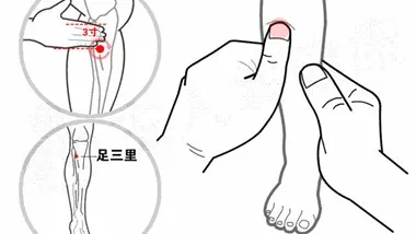 位置:小腿前外侧,膝盖外侧凹陷往下3寸(约孩子四指并拢的宽度),胫骨旁开一横指处。