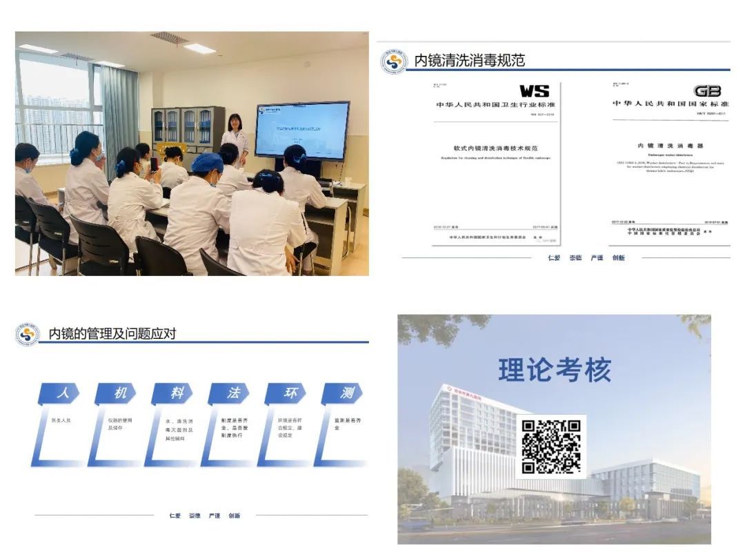 控感办封芬副主任护师以“软式内镜医院感染因素分析与应对”为主题进行授课,详细讲解了消化内镜清洗消毒的步骤及注意事项,通过梳理内镜管理人、机、料、法、环、测环节,明确消化内镜科学规范管理的细节要求,会后安排了理论考核巩固所学。消化内科以“内镜清洗消毒 床旁预处理”为主题进行操作讨论学习,对日常工作中如何认真执行床旁预处理并结合本科室实际工作对预处理环节进行优化改进,从而提高预处理环节的执行率。