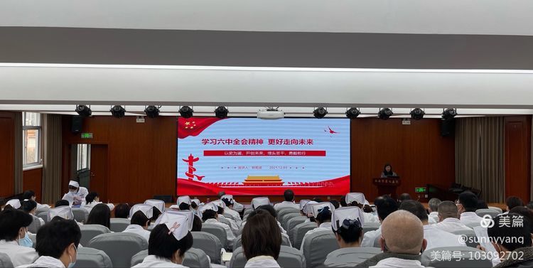 为持续深入学习贯彻党的十九届六中全会精神,按照市卫健委党委《关于深入开展学习宣传贯彻党的十九届六中全会精神有关工作的通知》要求,我院党委高度重视,把学习宣传贯彻全会精神作为当前和今后一个时期首要政治任务,作为深化党史学习教育的重点内容,于2021年12月3日下午,在我院学术报告厅,组织召开学习贯彻党的十九届六中全会精神宣讲会,会议由院长党明海主持,院党委书记郑菊贤以《学习六中全会精神 更好走向未来》为题进行宣讲,院领导班子成员及全体中层干部150余人参加宣讲会。