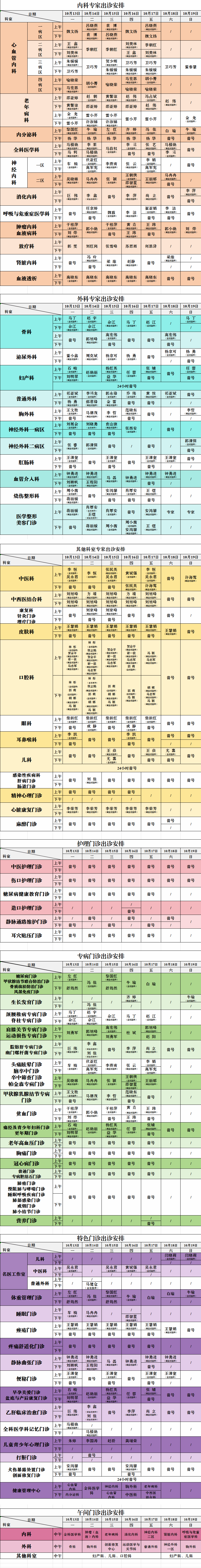 西安市第九医院门诊出诊安排(10.13-10.19)