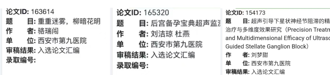 近期,西安市第九医院超声医学科科室团队积极投身学术交流,多篇文章成功入选在国家级学术会议,获得宝贵的交流展示机会。