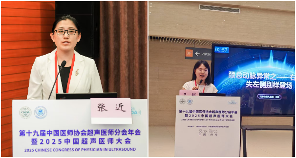 在"第十九届中国医师协会超声医师分会年会"上,科室骨干医生张近副主任医师以《超声诊断罕见周围神经淋巴瘤一例》为题进行汇报交流,以其创新的临床研究视角和详实的病例数据,获得与会专家的高度赞扬;王颖主治医师以《颈总动脉异常之——右侧失左侧别样登场》为题进行汇报交流,其病例引发与会专家热烈讨论;本次国家级会议的汇报交流,展示了我院在超声技术应用领域的最新探索。