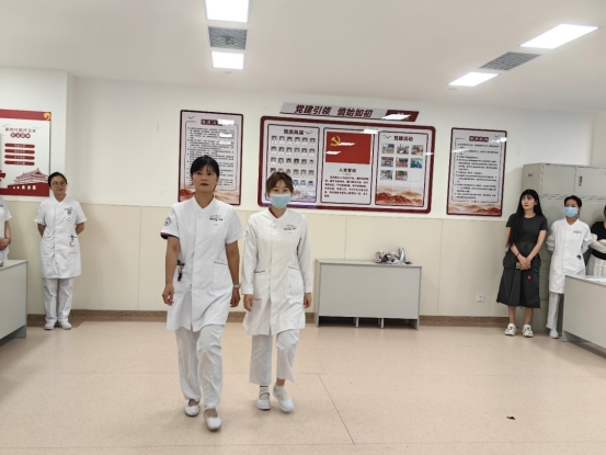 举止间的礼仪,藏着服务的柔软力量。成员们在实操中练习站姿、坐姿与走姿,从自然挺拔的体态到温和从容的肢体语言,反复校准每一个动作细节,只为让患者在初见时便感受到安心与信赖,让举止礼仪成为无声的关怀。