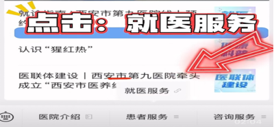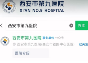 第一步:扫描二维码进入西安市第九医院公众号或微信搜索西安市第九医院