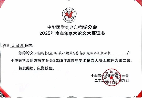 这不仅是对科室在慢性病研究领域所取得成果的认可,更是展示科研实力、促进学术交流的良好契机。全科医学科马楼艳副主任医师、健康管理中心刘宋芳副主任医师长期讨论合作,在针对慢性病防治方面做了大量的研究,尤其是在2型糖尿病及并发症的发病机制与临床防治方面取得了大量研究成果,近年来共同发表论文6篇,并联合获得2024年陕西省科学技术奖励三等奖一项。