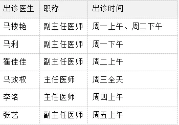 门诊出诊安排(门诊一楼全科专家门诊)
