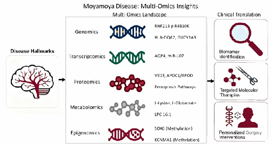 文章进一步指出,多组学整合有望推动烟雾病从“影像驱动诊疗”迈向“分子分型+精准干预”的新阶段:通过更可靠的生物标志物组合、靶向分子通路研究及与手术策略的协同优化,未来或可实现更精细的风险评估、疗效预测与个体化治疗路径设计。