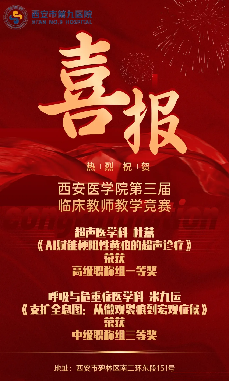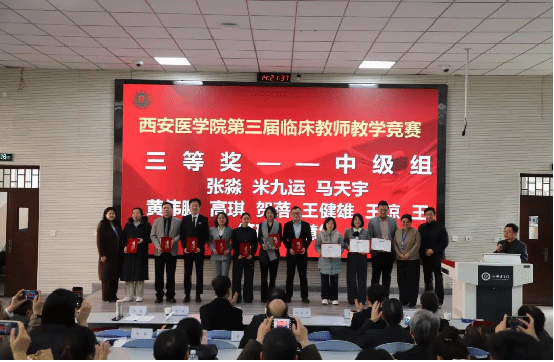 在深化医教协同、推动临床教学高质量发展的道路上,优秀的临床教师是培养卓越医学人才的核心力量。在2026年1月9日举办的西安医学院第三届临床教师教学竞赛中,我院参赛教师凭借创新的教学设计、扎实的专业功底和出色的现场表现,荣获佳绩。其中,超声医学科杜燕主任讲授的《AI赋能梗阻性黄疸的超声诊疗》荣获高级职称组一等奖;呼吸与危重症医学科米九运讲授的《支扩全息图:从微观裂痕到宏观症候》荣获中级职称组三等奖。