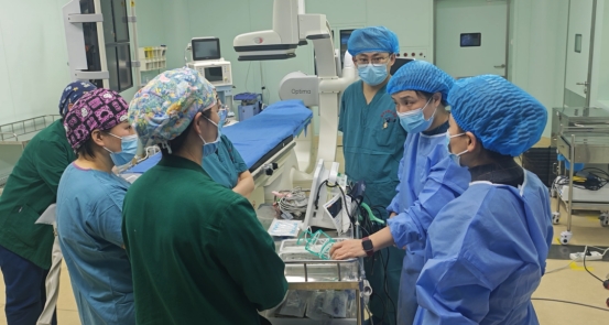 正是在这样的挑战面前,西安市第九医院心血管病院二病区团队展现了敢于突破的魄力与精准评估的能力。经心尖入路的TAVR术式作为一种国际领先的微创治疗技术,为贺先生这类患者提供了新的希望。但经心尖入路也对手术团队的技术、影像评估及围术期管理提出了更高要求。术前,在院领导、医务科协调指挥下,心血管病院二病区团队组织了严谨的多学科会诊,通过详尽的影像学检查精确测量主动脉瓣环大小、位置等关键数据,综合评估患者整体状况与解剖结构。最终,团队以精湛的技术底蕴和对患者高度负责的态度决定迎难而上,为患者实施创伤更小、恢复更快的经心尖TAVR手术,这本身即是医疗决策从“可做”到“优做”的一次质量跃升。
