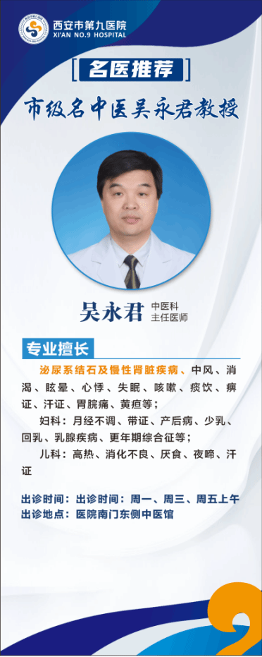 一位在患者中口口相传的名医--吴永君主任医师,如今坐诊我院名医工作室。近四十年的行医积淀,化作了对各类顽固疾病的独到见解与显著疗效。无论是“治未病”还是“疑难... -