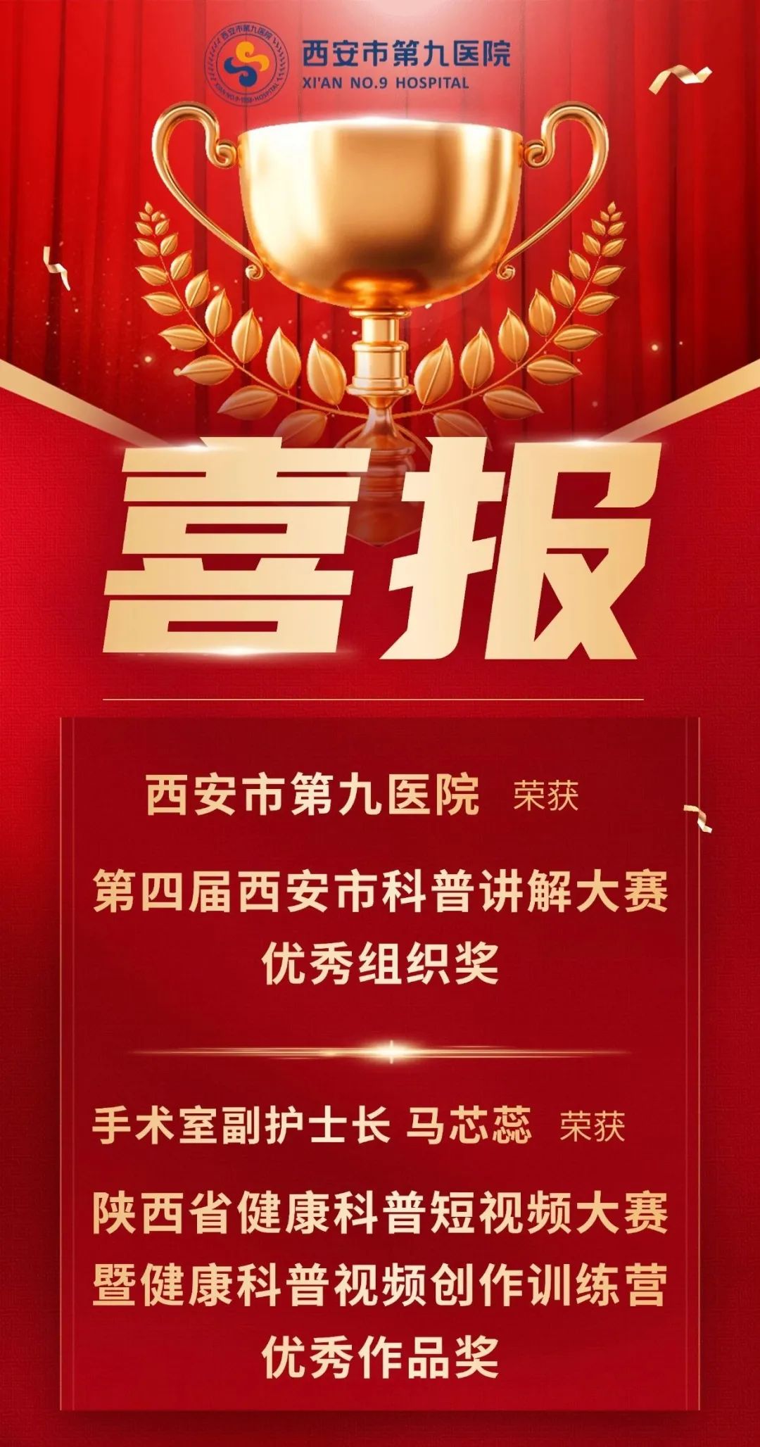 2025-08-01喜报!西安市第九医院荣获两项科普类荣誉