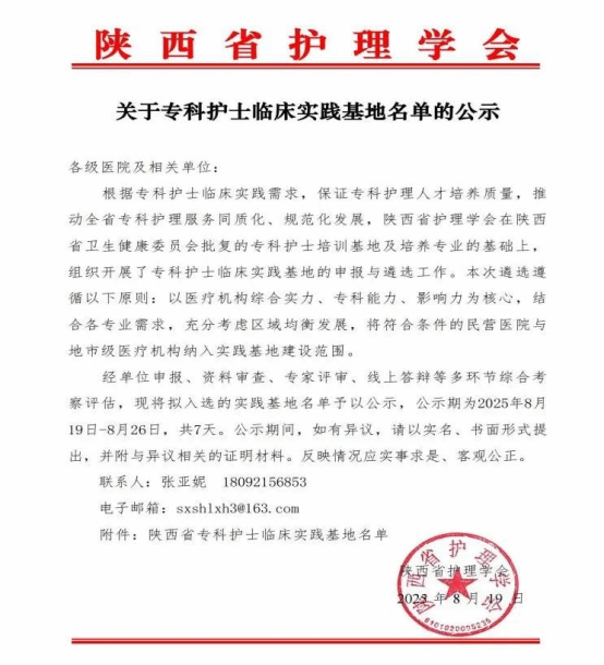 8月19日陕西省护理学会公示2025年专科护士临床实践基地名单,西安市第九医院凭借扎实的专科实力与规范化管理,成功入选中医、烧伤整形、老年护理、糖尿病护理四大专业实... -