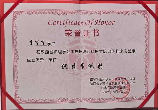 近日,西安市第九医院康复科护士李肖肖在为期三个月的“陕西省第五批康复专科护士培训班”中表现优异,在个案汇报环节荣获“优秀案例奖”,充分展现了九院康复护理团队... -